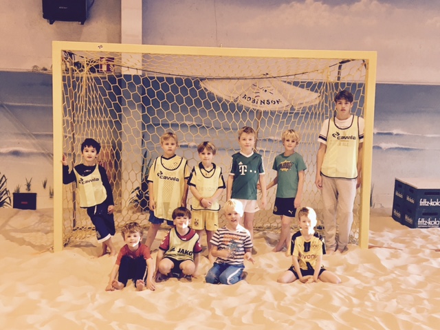 Um 15.00 Uhr trafen sich die Kleinsten und spielten neben Handball und Fußball auch andere Sportspiele im Sand. Im Anschluss gab es Pizza für die Kids.