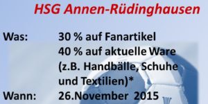 Am Donnerstag, den 26.11.2015, lädt Teamsport Philipp die HSG zu einem Sonderverkauf ein.